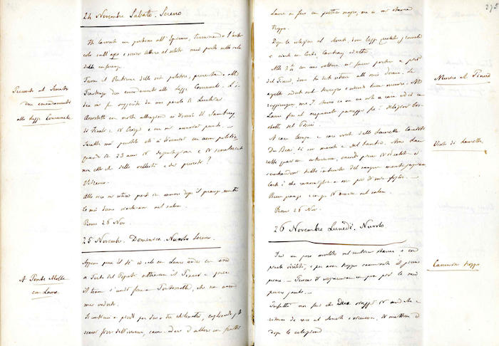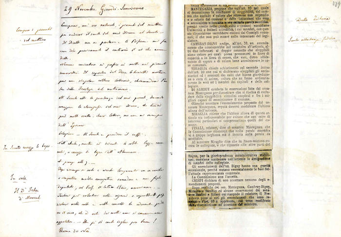 Si segnala la presenza, tra le pagine del Giornale e in appendice ad esso, di: lettere, biglietti, telegrammi, ricevute di natura economica, ritagli di articoli di giornale.