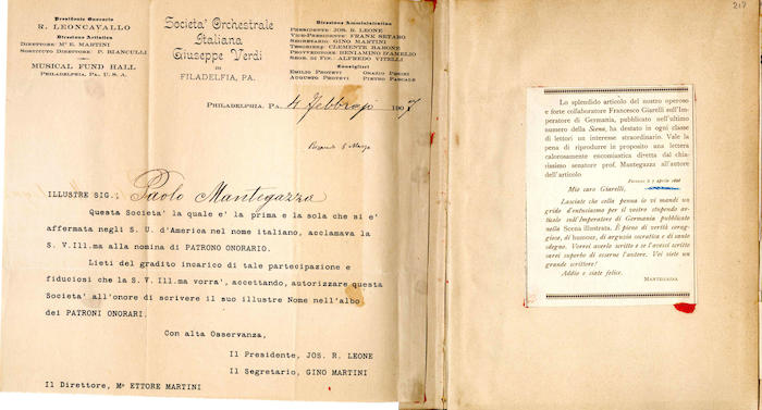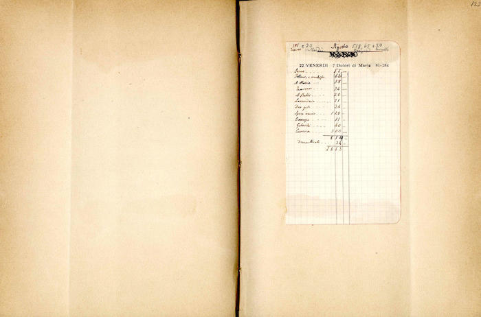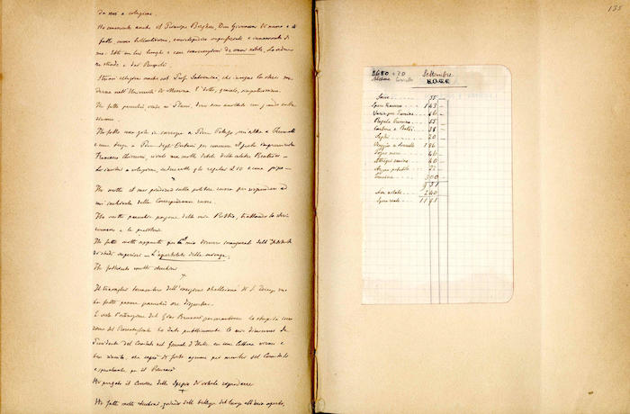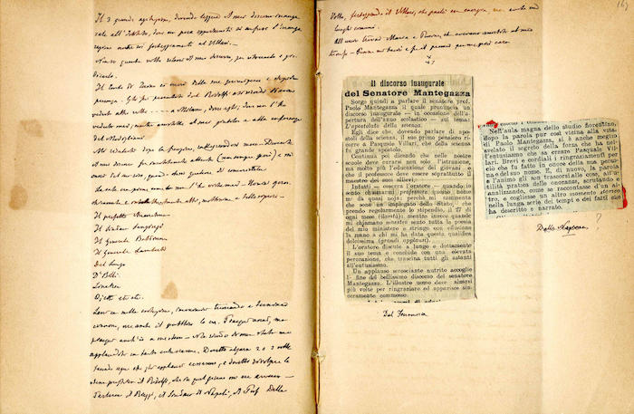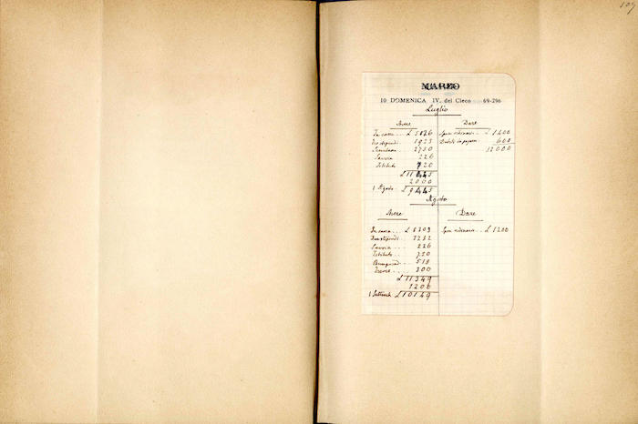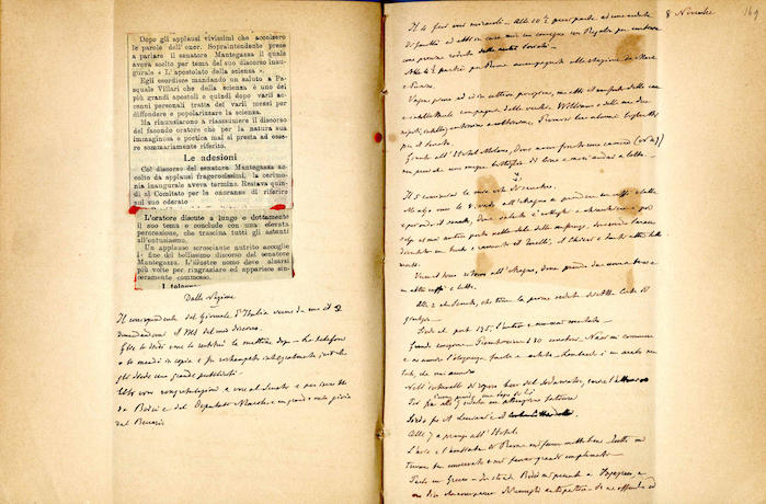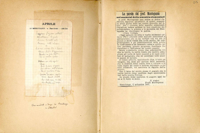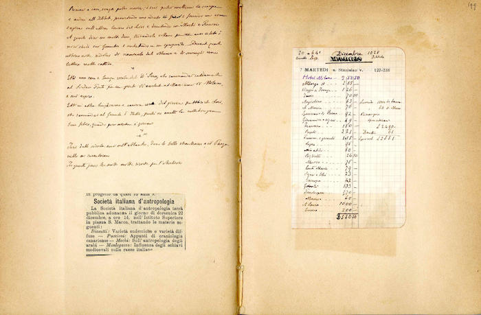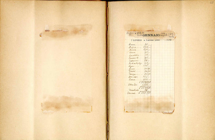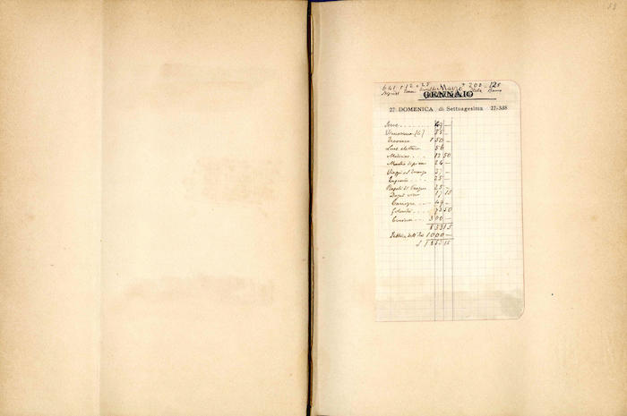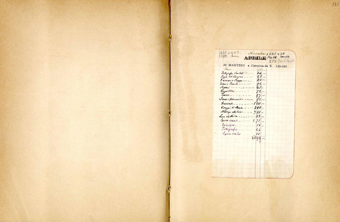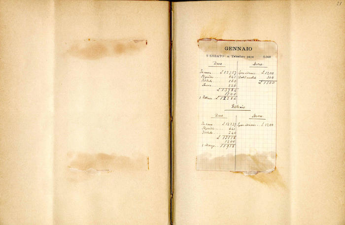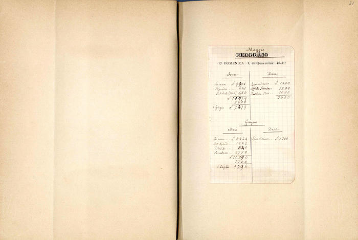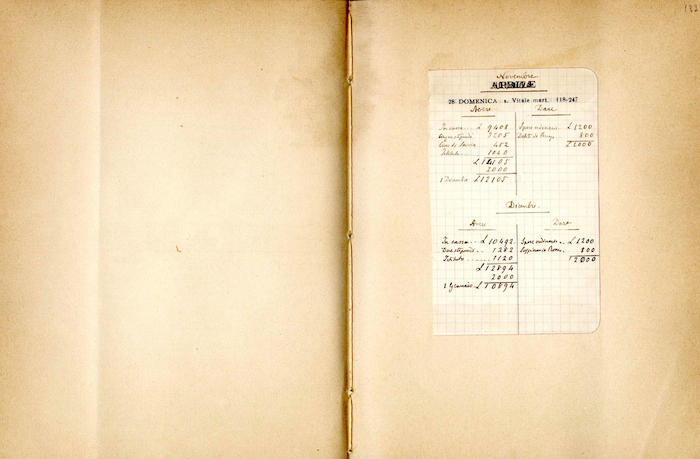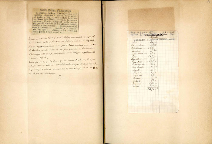 Si segnalano tabelle statistiche, biglietti manoscritti (gennaio, giugno), fogli di rendiconti spese incollati (gennaio, febbraio, marzo, aprile, giugno, luglio, agosto, settembre, ottobre, novembre, dicembre), ritagli stampa (febbraio, marzo, aprile, novembre, dicembre), invito dattiloscritto (aprile), ricevuta di pagamento (ottobre). In appendice si trovano biglietti e lettere manoscritte e dattiloscritte.