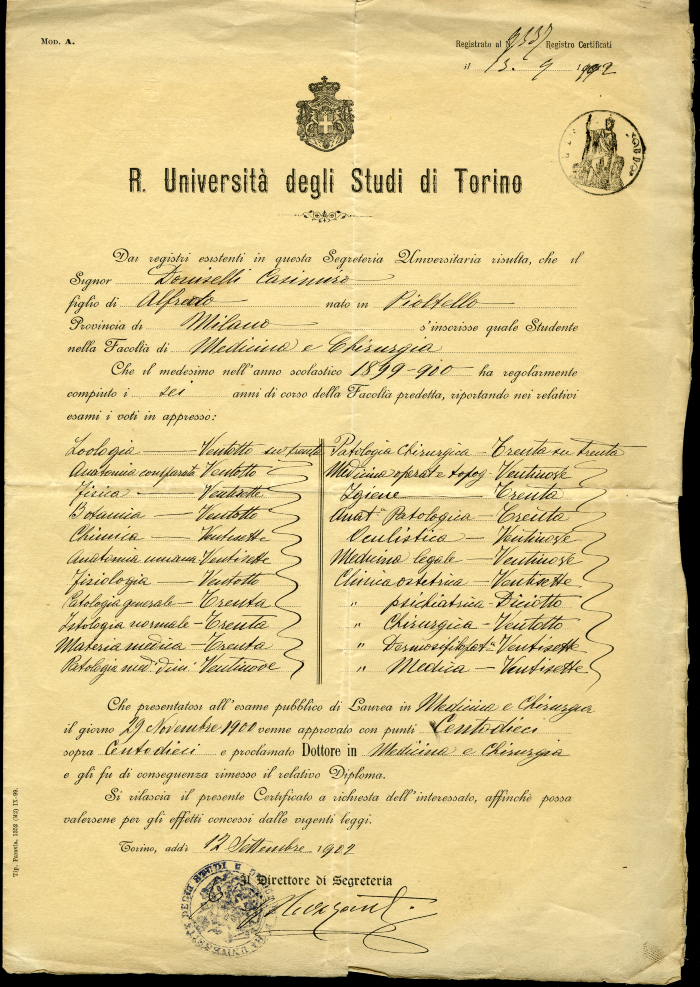 Certificati di laurea in Medicina e chirurgia dell'Università di Torino