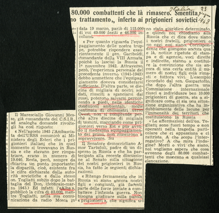 Articoli di giornale sui dispersi italiani in Russia