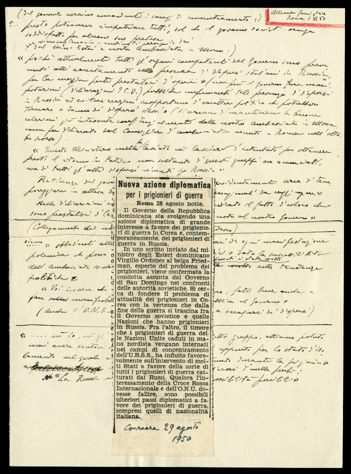 8) "Nuova azione diplomatica per i prigionieri di guerra", in "Corriere della sera", 29 agosto 1950
