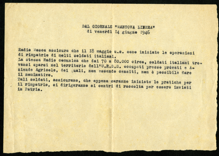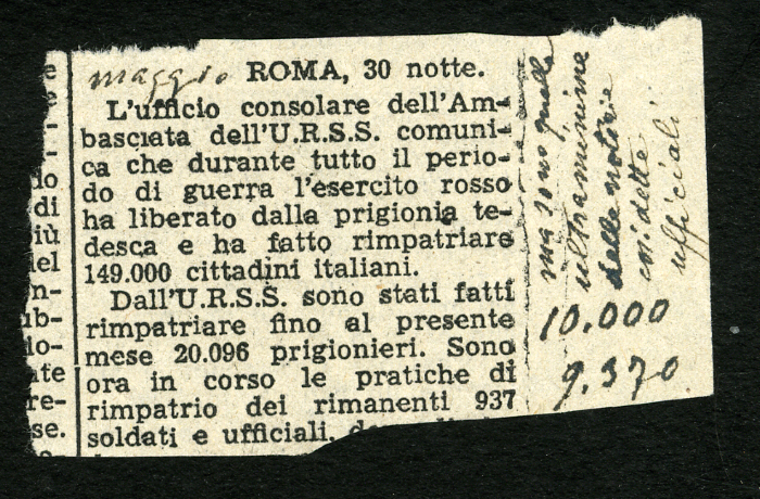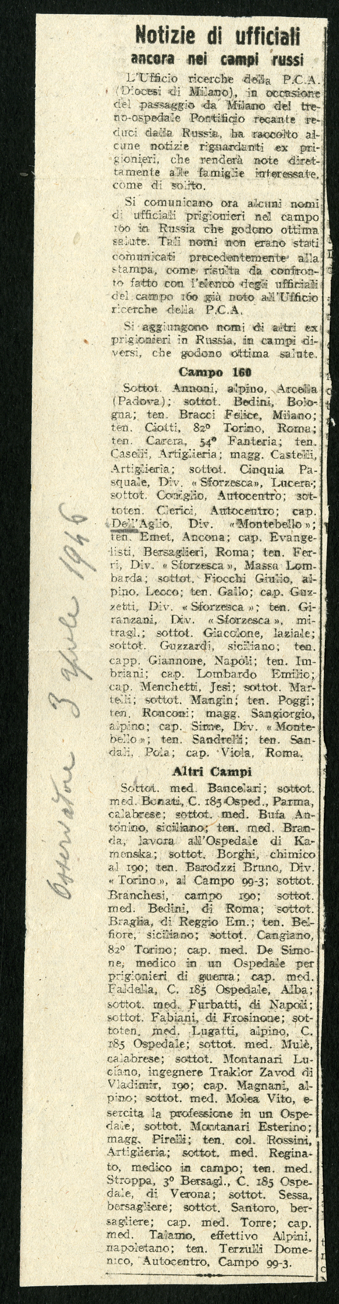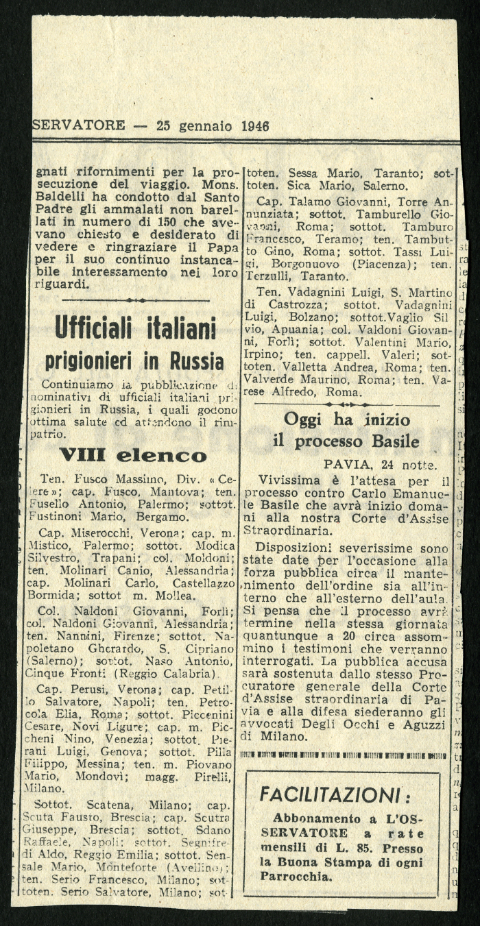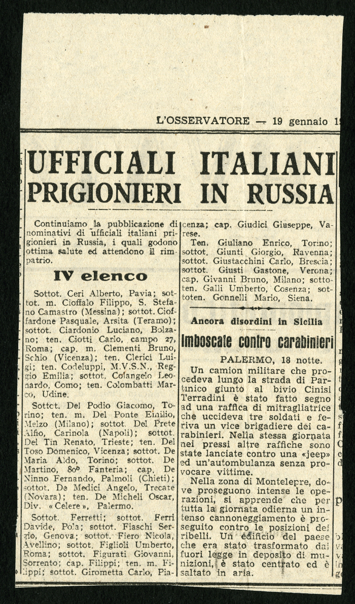 2) "Notizie di ufficiali ancora nei campi russi", in "L'Osservatore", 3 aprile 1946