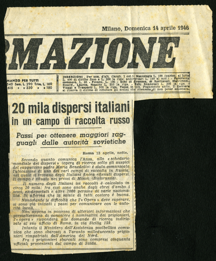 3) "20 mila dispersi italiani in un campo di racolta russo", in [s.n.], 14 aprile 1946
