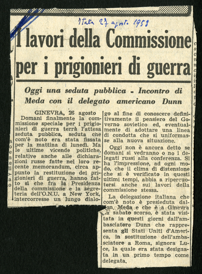 10) "I lavori della Commissione per i prigionieri di guerra", in "Italia", 27 agosto 1953