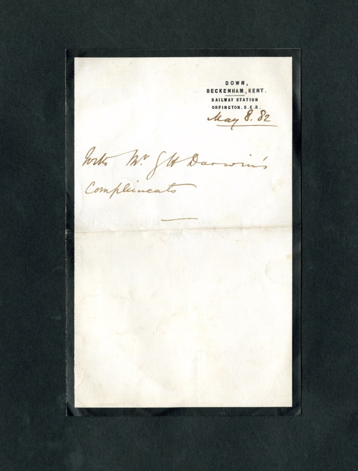 Carta intestata: "Down, / Beckenham, Kent. / Railway Station / Orpincton. S.E.R."