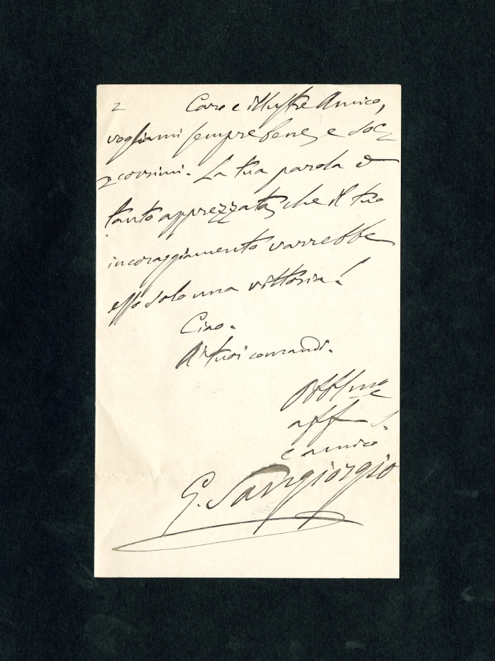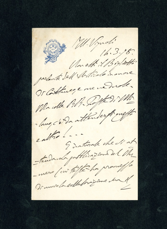 1 lettera di Gaetano Sangiorgio (1843-1912), membro della Società d’Esplorazione commerciale in Africa e collaboratore della rivista "L’Esploratore", a Vignoli: