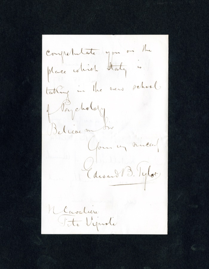 1 lettera in inglese dell'antropologo britannico Edward Burnett Tylor (1832-1917) a Vignoli: