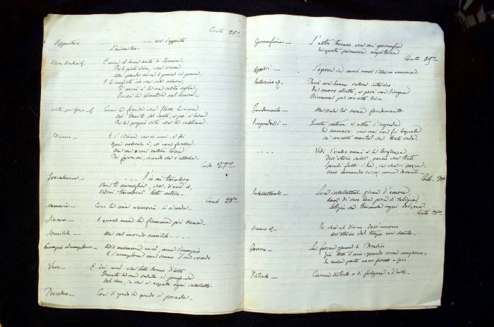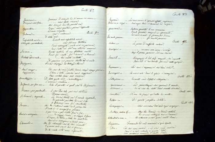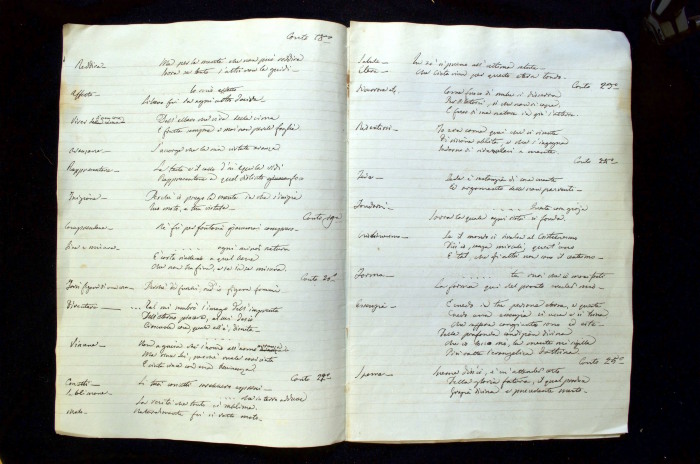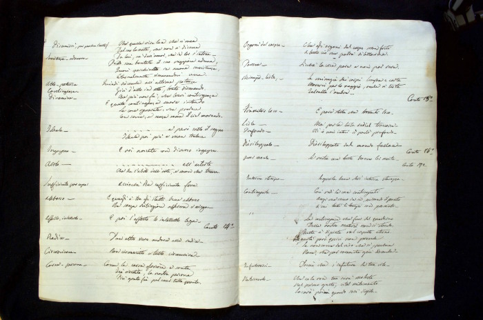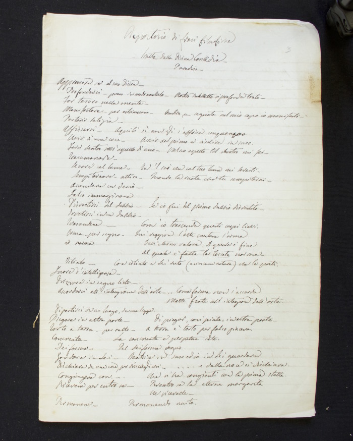 Repertorio manoscritto che contiene citazioni tratte dal Paradiso e dal Convito.