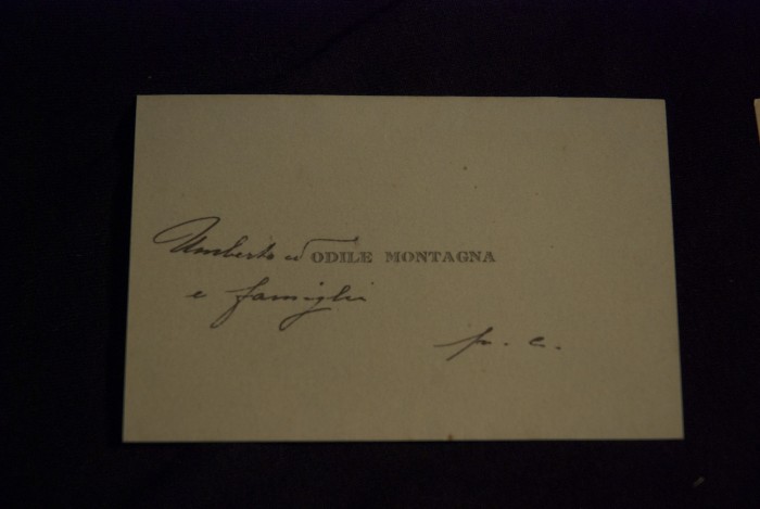 Biglietto di condoglianze a Pizzoli inviato da Umberto e Odile Montagna.